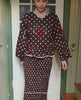 This garment features a handmade block print applied by artisans. Because every motif is stamped by hand you have to accept there is variations, specks, or imperfections on this garment.