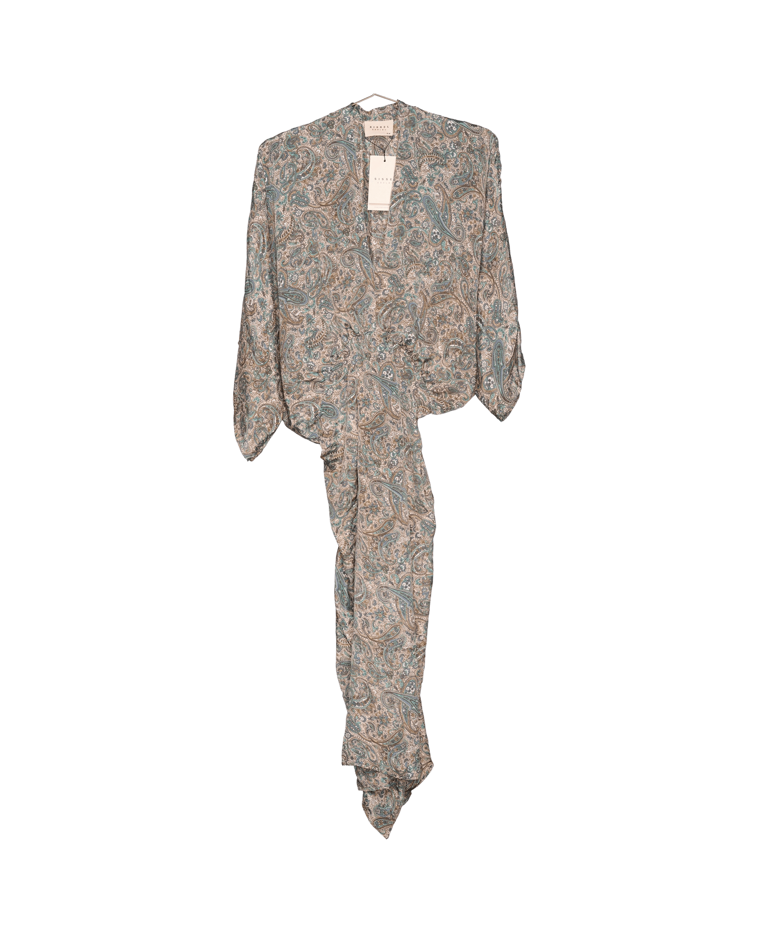 This unique item is made from a beautiful upcycled sari handpicked by SISSEL EDELBO. The sari has previously been worn by an Indian woman, which means that smaller imperfections, such as small stains and loose threads will occur. However, to us these imperfections are the garment’s unique beauty flaws. They reflect the life and the love that the previous owner has added to the fabric. Each garment is one of a kind, and as part of its charm, you may notice differences in the prints and colors between the front and back of the piece. We hope you will love the story of the garment as much as we do.