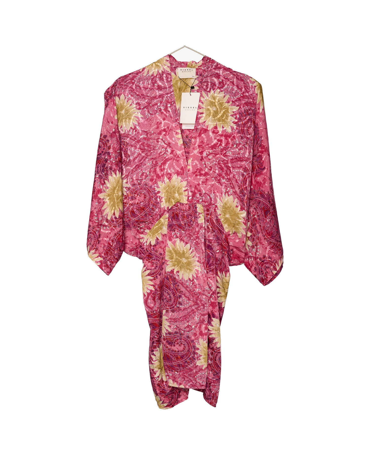 This unique item is made from a beautiful upcycled sari handpicked by SISSEL EDELBO. The sari has previously been worn by an Indian woman, which means that smaller imperfections, such as small stains and loose threads will occur. However, to us these imperfections are the garment’s unique beauty flaws. They reflect the life and the love that the previous owner has added to the fabric. Each garment is one of a kind, and as part of its charm, you may notice differences in the prints and colors between the front and back of the piece. We hope you will love the story of the garment as much as we do.