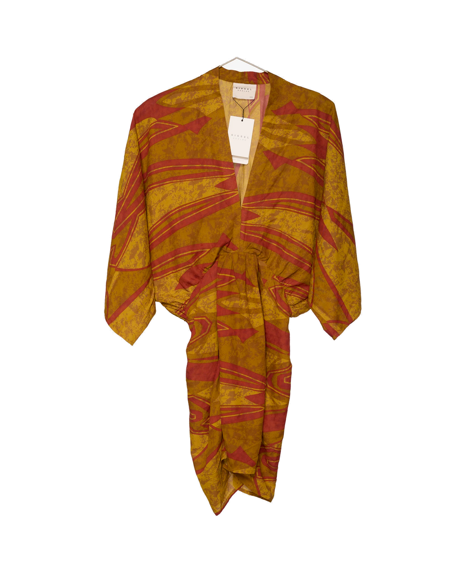 This unique item is made from a beautiful upcycled sari handpicked by SISSEL EDELBO. The sari has previously been worn by an Indian woman, which means that smaller imperfections, such as small stains and loose threads will occur. However, to us these imperfections are the garment’s unique beauty flaws. They reflect the life and the love that the previous owner has added to the fabric. Each garment is one of a kind, and as part of its charm, you may notice differences in the prints and colors between the front and back of the piece. We hope you will love the story of the garment as much as we do.