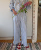 Kiki Pants have an ankle-length, straight-leg silhouette and are made of leftover cotton in yarn-dyed stripes. They feature a wide, elasticated waistband for a comfortable fit and side seam pockets. Delicate ruffles are added at the leg openings, giving the pants a soft, flouncy finish.