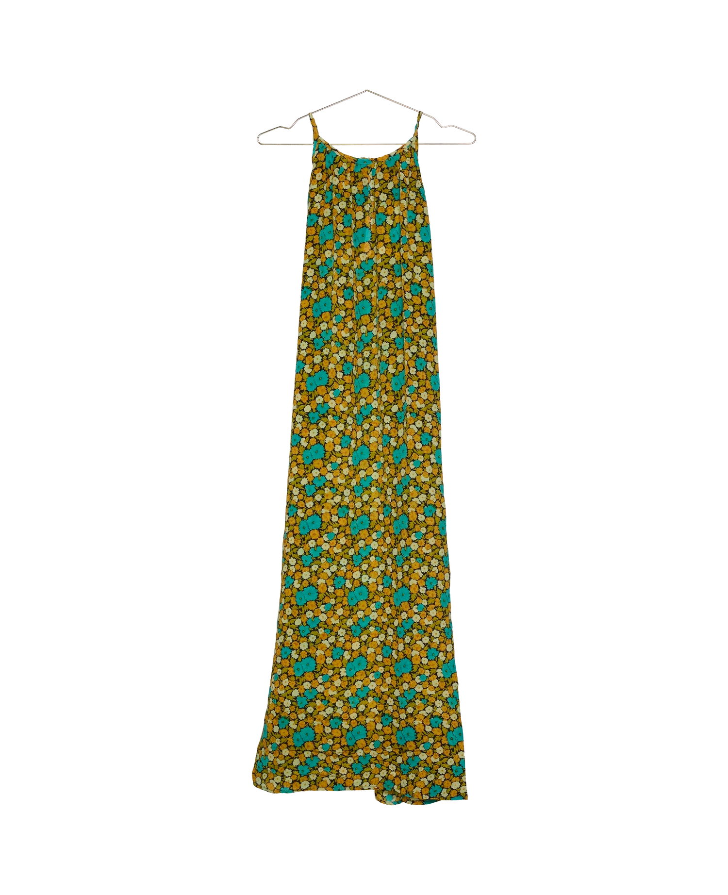 Merida SILK Strap Dress is a long strap dress with a round neckline made with gathers. The dress has pockets inside seams and a detachable string belt.