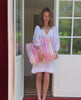 Pricilla Bag is a padded and quilt-stitched bag made in 100% organic cotton with a beautiful all-over handmade screen print. The medium size bag has a perfect size to carry all your favourite belongings. The bag is designed with an inside pocket for your smaller belongings. The bag is fully lined with striped cotton and all the outside seams are covered with bindings in the same striped cotton.
