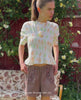 Vincenta Top is a feminine top, defined by its elastic smocked bodice and peplum hemline, and it is made of leftover cotton with a cute all-over sun print. The top has short, casual sleeves with delicate gathers along the shoulder seams and features an O-neckline with a single button closure at the center back.