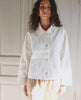 Vintage Jacket is made in cotton twill and has a casual fit. The jacket features a collar and a wide front placket with large light mother-of-pearl buttons. It has long sleeves with wide cuffs and front pockets. The inside is finished with a floral lining. The jacket is decorated with delicate cutwork embroidery and a small ‘SISSEL’ signature embroidery.